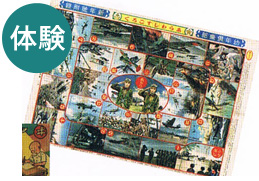 戦前・戦中の子どもたちが使っていた教科書や玩具を畳の上で体験できます。